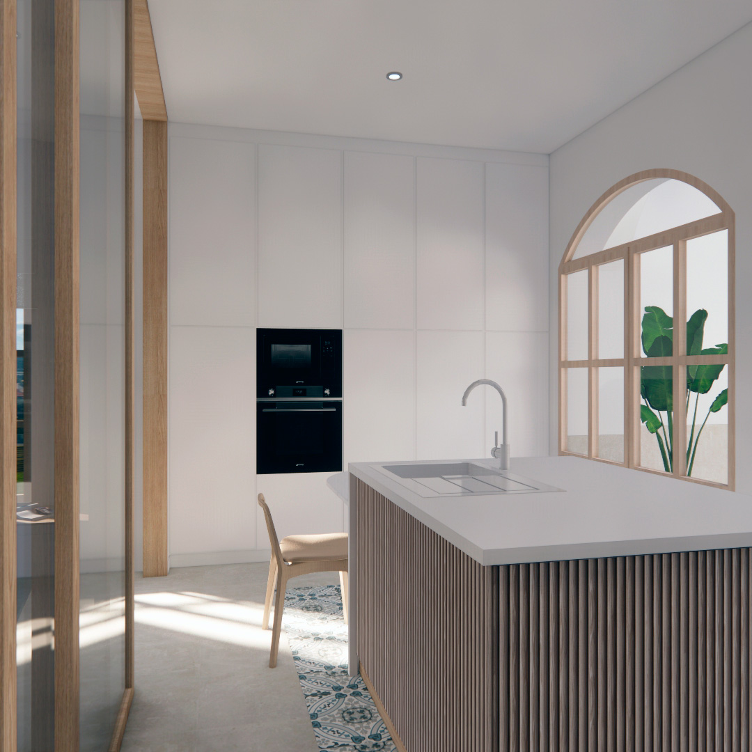 El color madera toma presencia aportando calidez y consonancia con el cromatismo interior.