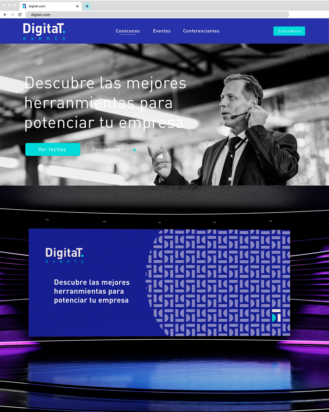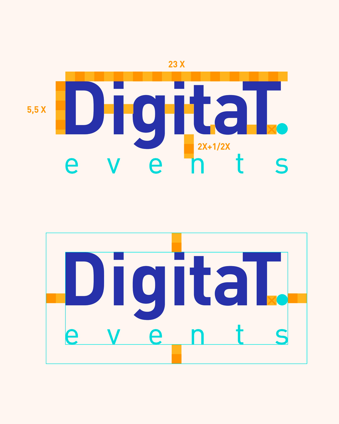 Diseño de identidad corporativa para la empresa DigitaT events, especializada en la organización de eventos y gestiones empresariales. Un logotipo con carácter y adaptado para implementarse en todo tipo de medios.