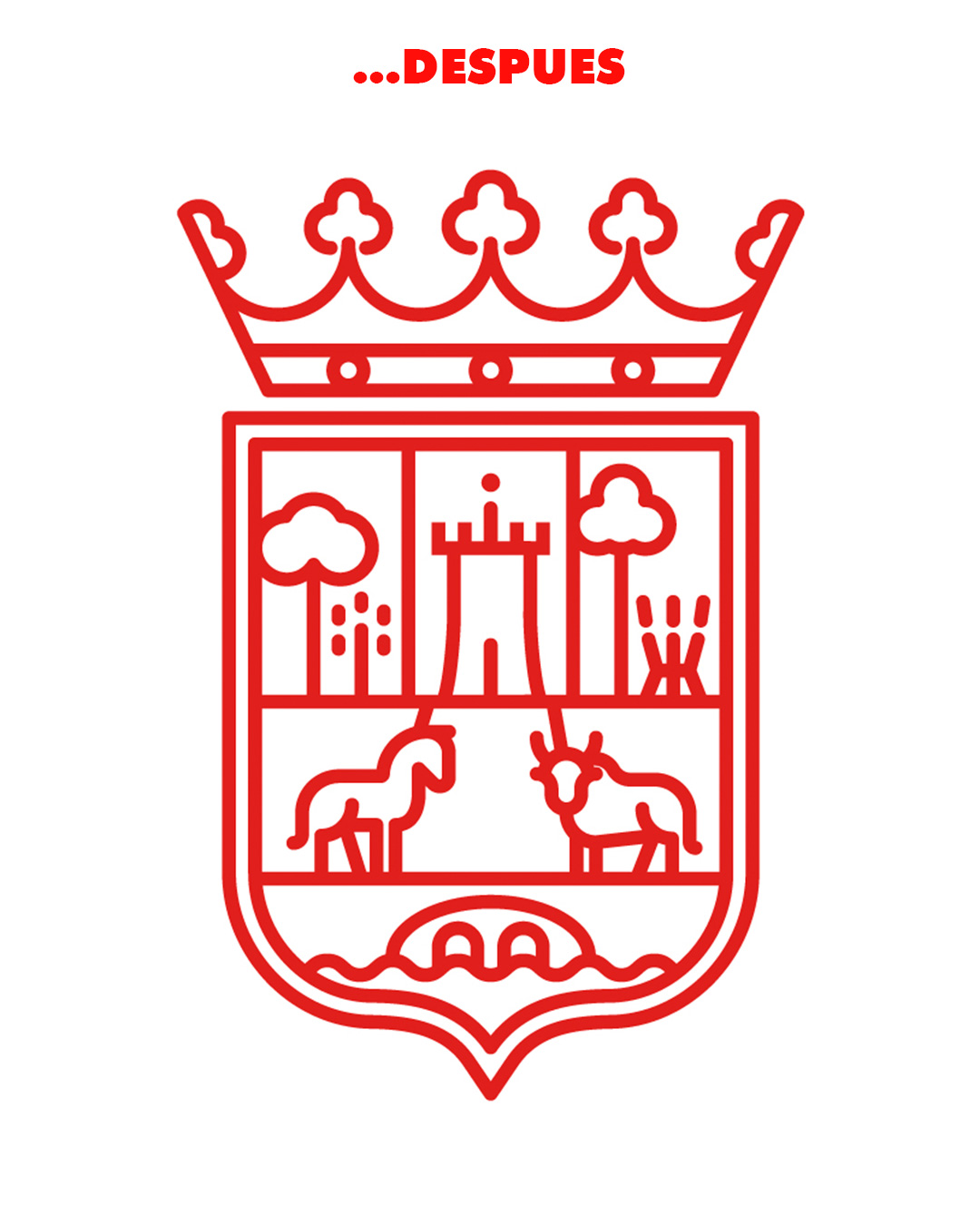 El diseño presenta una vectorización completa con líneas estéticas y la máxima sencillez, representando a la perfección todos y cada uno de los elementos presentes en el emblema anterior.