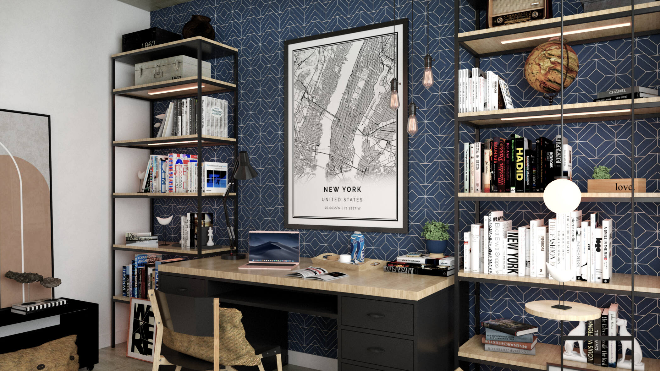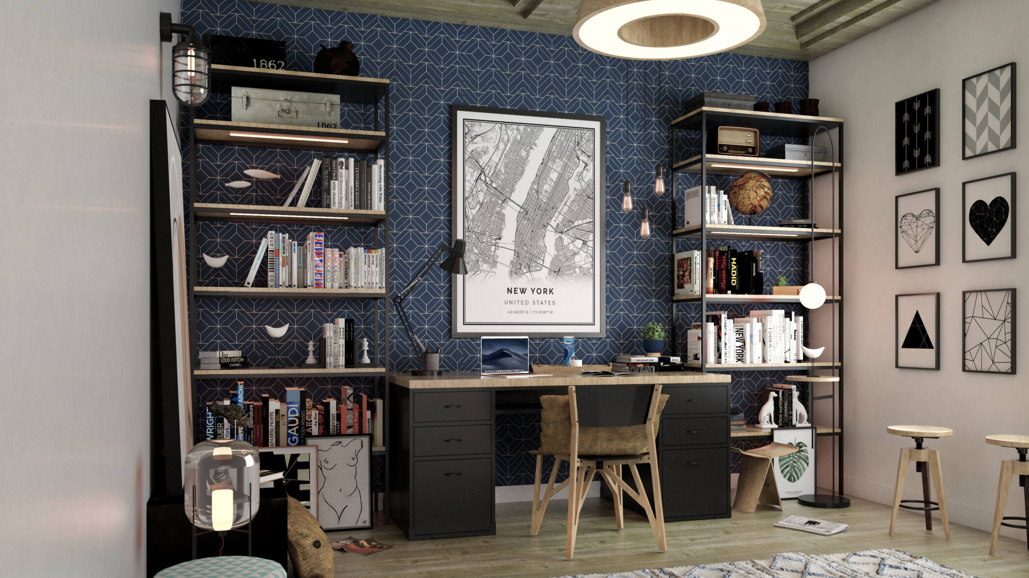 Proyecto de interiorismo desarrollado para un cliente que necesitaba un espacio de trabajo en casa. Un lugar perfecto y armónico para desarrollar la creatividad. Dotamos al espacio de habitabilidad, luz y bienestar.