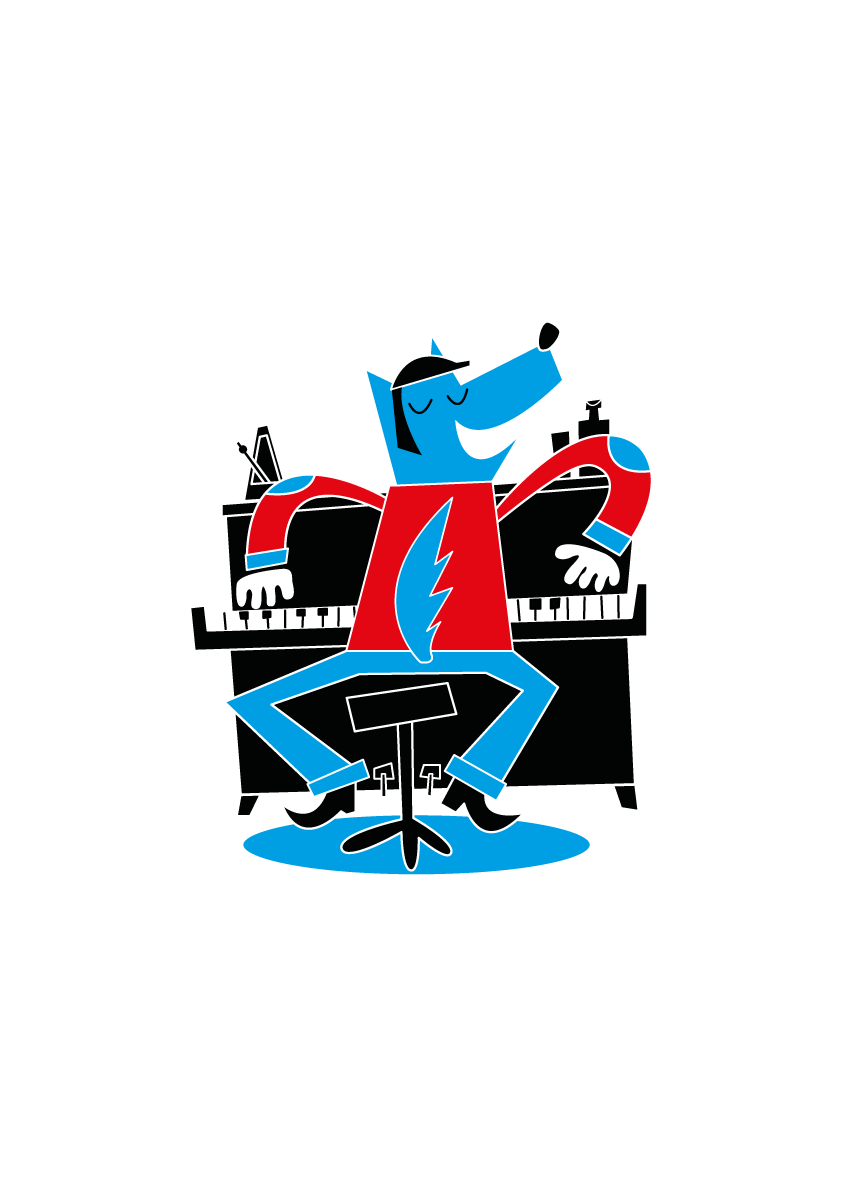 Proyecto de ilustración para particular. Un trabajo especial para captar la atención musical de los más pequeños, una serie de perros músicos,  ilustrados con la intención de reflejar los diferentes tipos de instrumentos musicales que existen.