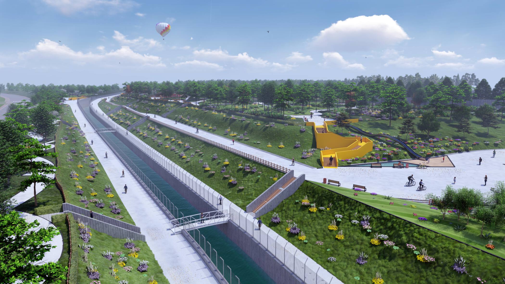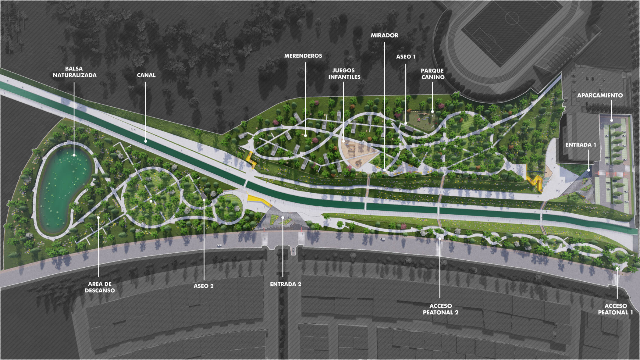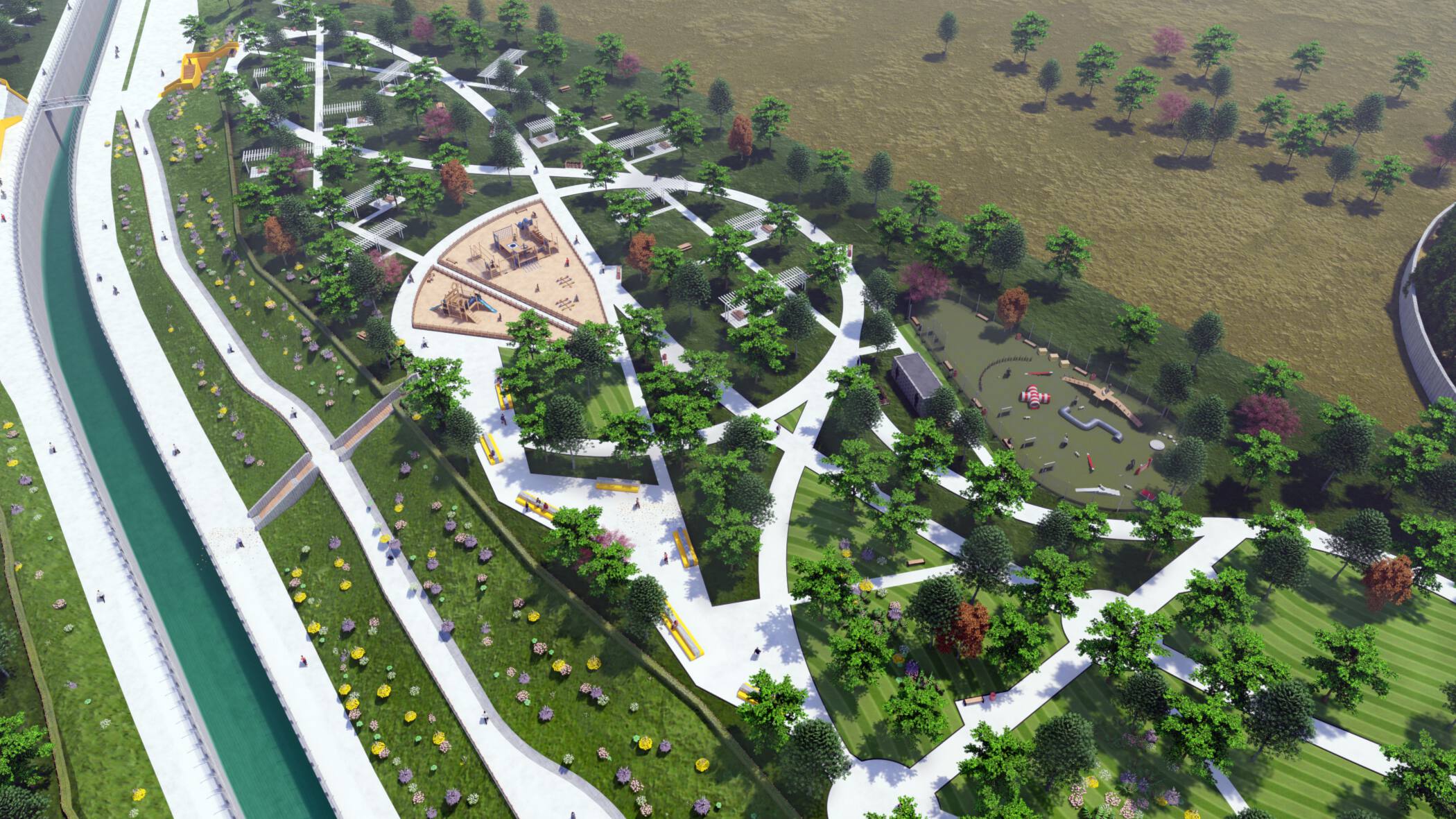 Un proyecto que cambia la escala del diseño, hablamos de 9 hectáreas de zonas verdes y una balsa naturalizada.