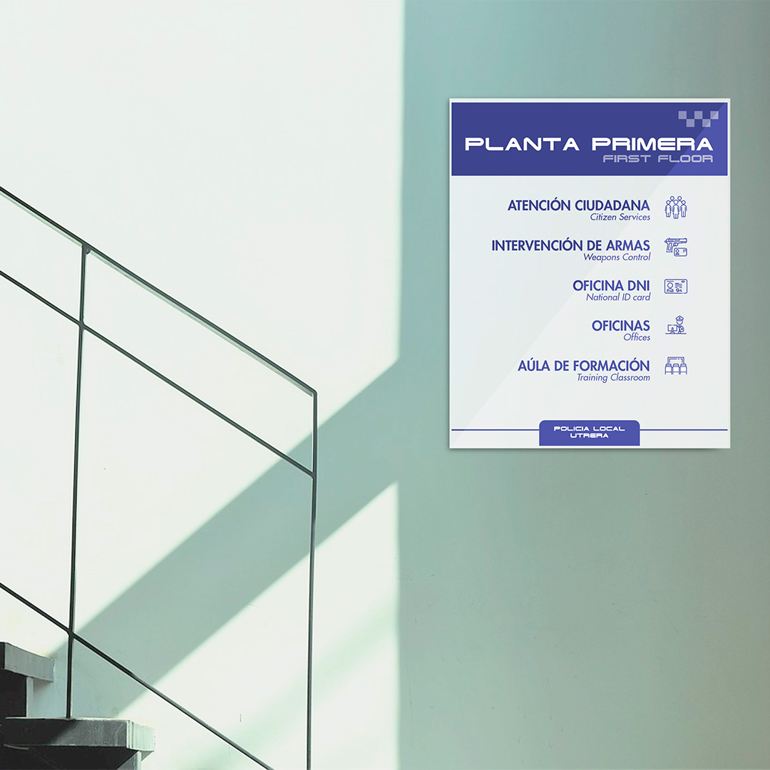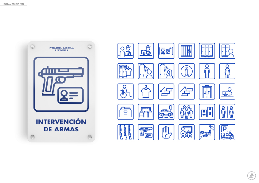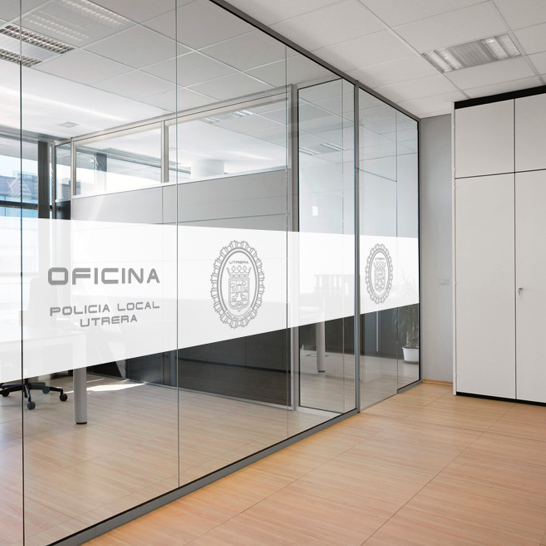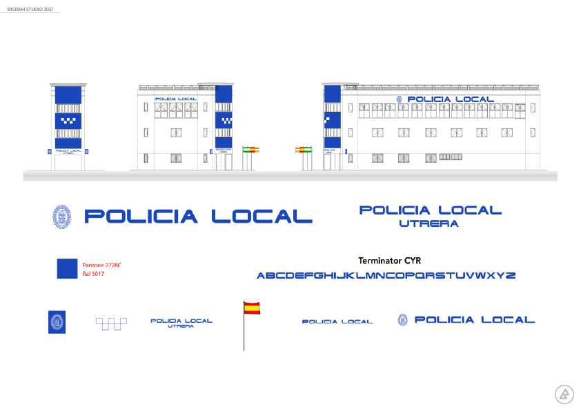 Rediseño de la identidad corporativa, diseño de señalética interior y rotulación exterior para la Jefatura de Policía Local de Utrera.