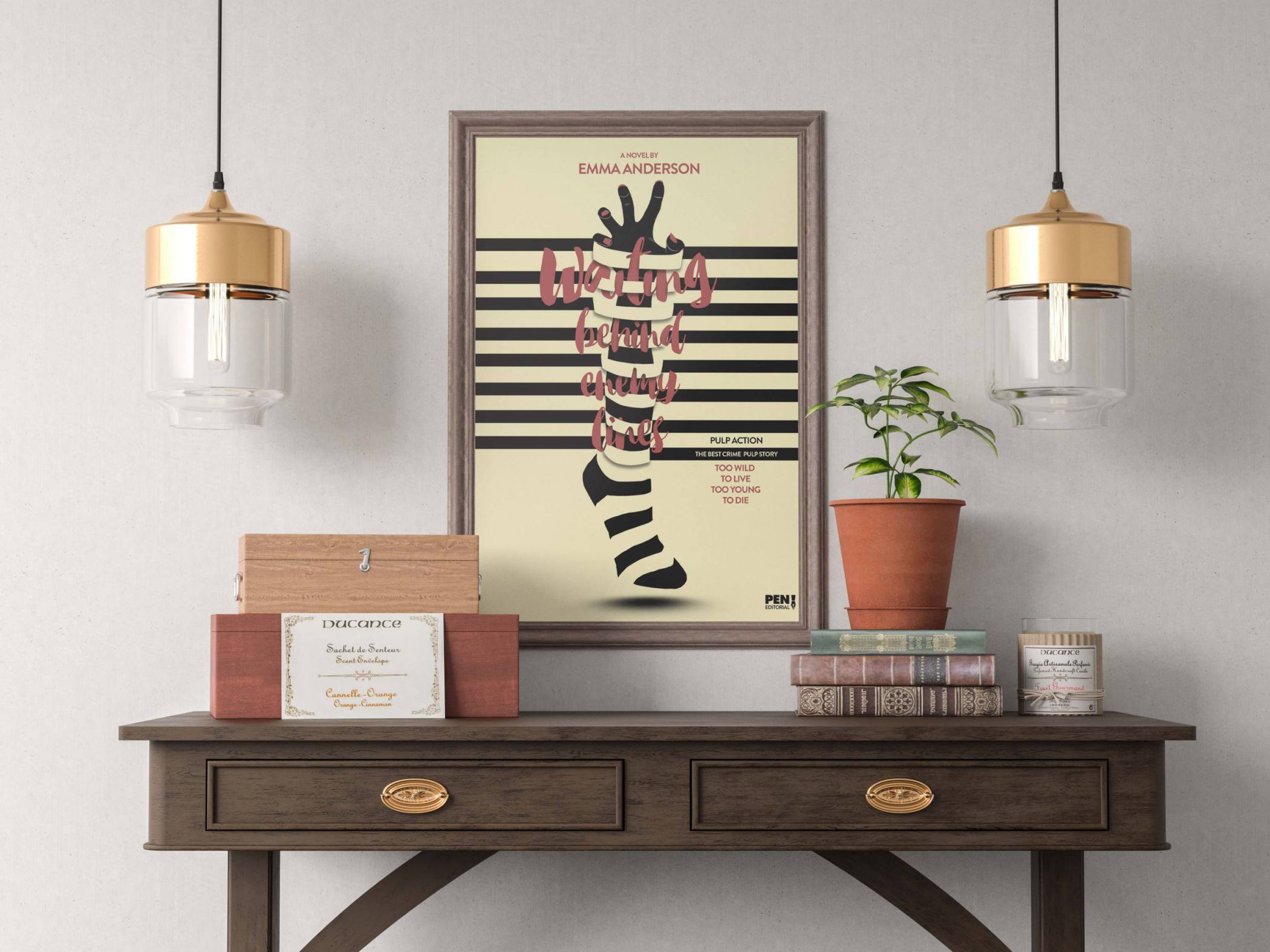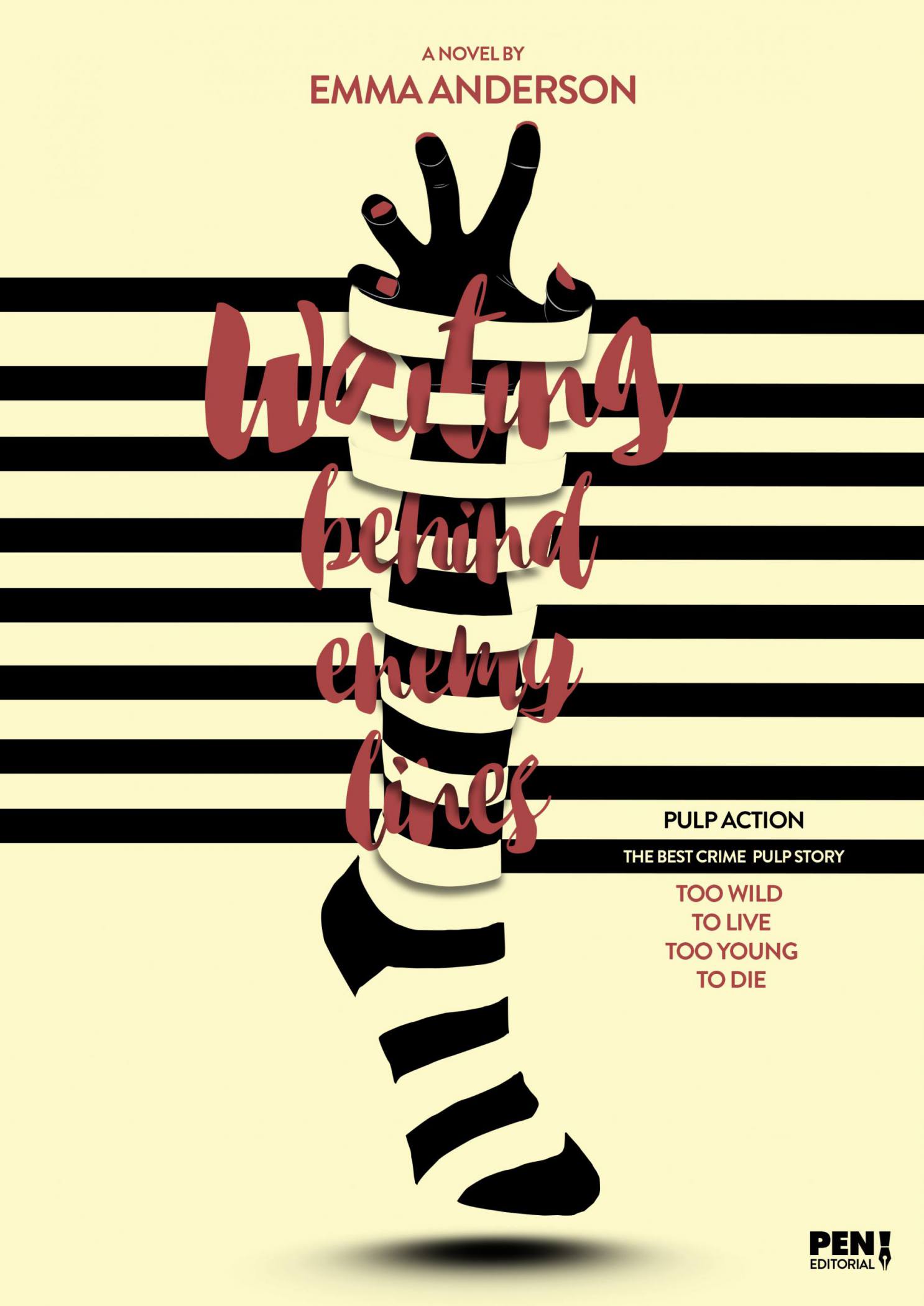 Trabajo de ilustración para el libro Waiting Behind Enemy Lines, de la escritora Emma Anderson. Un libro fiel al estilo Pulp, donde reflejamos la complejidad de la historia, mediante el juego del tejido de las líneas horizontales.